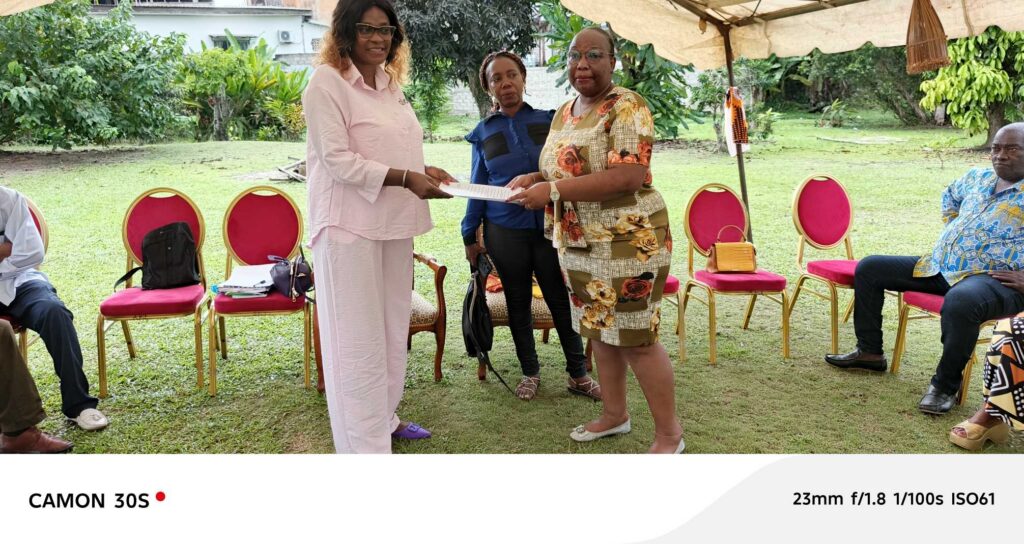 Mme Mbazoghe remettant les propositions de loi à Mme Obono Essono pureté jolie