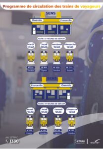 En effet, c’est faisant suite à cette relance que l’entreprise ferroviaire présente à son aimable clientèle son nouveau programme de voyages.